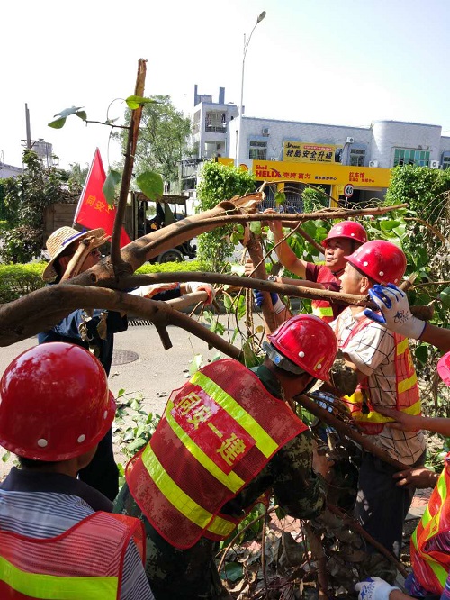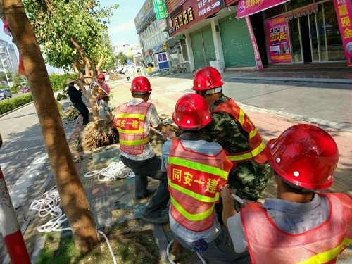 今年第14號(hào)臺(tái)風(fēng)“莫蘭蒂”逼近,14日晚,廈門市同安區(qū)第一建筑工程公司全面啟動(dòng)防臺(tái)應(yīng)急預(yù)案,公司領(lǐng)導(dǎo)及各部門負(fù)責(zé)人身先士卒,帶領(lǐng)救援隊(duì)伍80人,建立起24小時(shí)輪流值班制,嚴(yán)陣以待。 9月15日凌晨,臺(tái)風(fēng)登錄給廈門帶來重創(chuàng),災(zāi)情過后,清晨7時(shí),同安一建立刻組織救援隊(duì)伍奔赴受災(zāi)現(xiàn)場開展救援。經(jīng)過5個(gè)小時(shí)的不懈努力,三秀路,城西路,古莊路基本恢復(fù)通行。 而連日來,全司166名職工響應(yīng)公司號(hào)召,放棄三天休假,戰(zhàn)斗在抗臺(tái)救災(zāi)一線,加入到古莊路、銀湖路、環(huán)城路等路面救援隊(duì)伍中,做到大災(zāi)面前,共擔(dān)風(fēng)雨,讓美麗的同安家園以最快的速度重現(xiàn)光彩!”