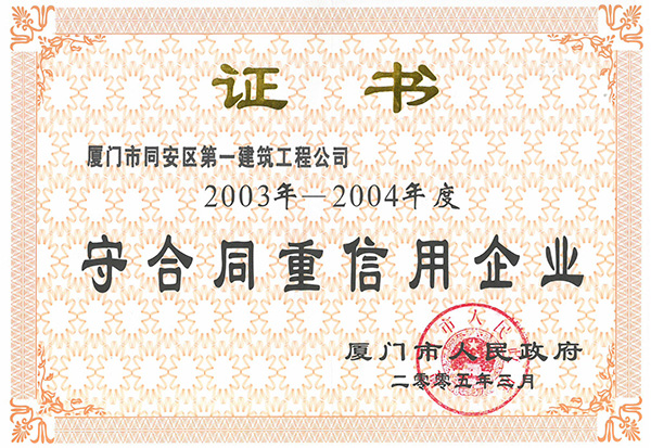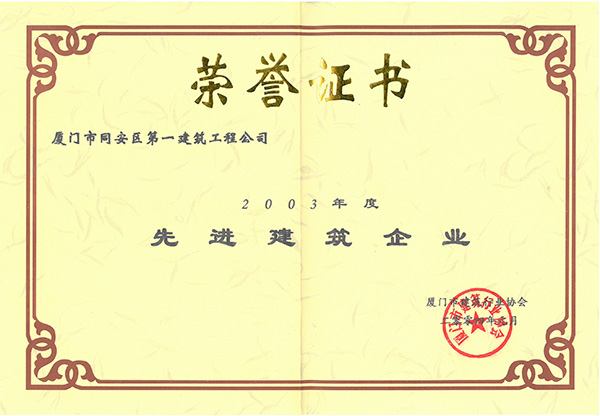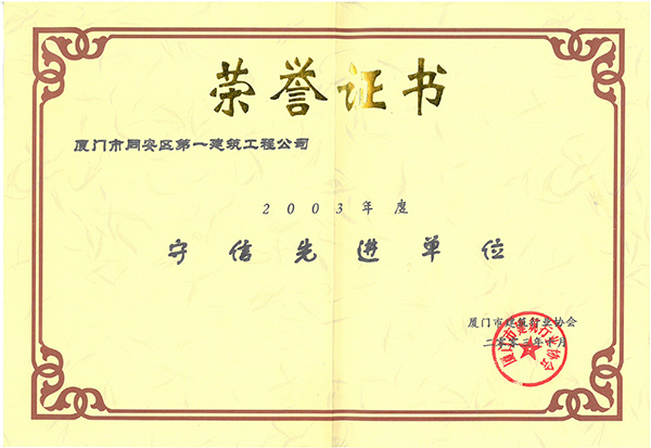 2003年度廈門市建筑業(yè)行業(yè)守信先進單位