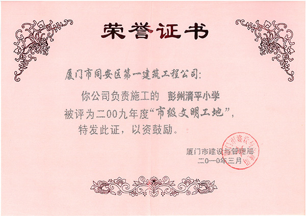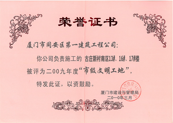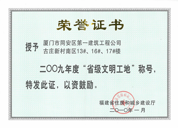 2009年度“省級(jí)文明工地”古莊新村南區(qū)13#、16#、17#樓